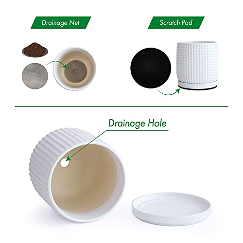 Pflanztopf mit Ablaufloch und passendem Untersetzer – jeder Topf kommt mit vorgebohrtem Ablaufloch und perfekt passendem Keramik-Design-Tablett für eine kleine Menge übermäßigen Wasserablauf.