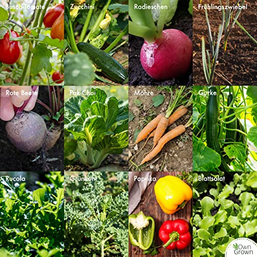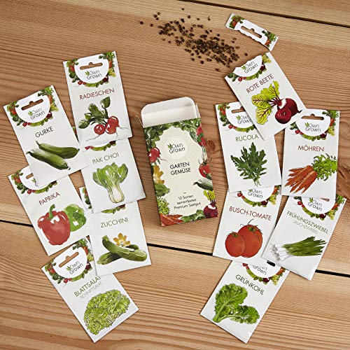 🥦 12 KÖSTLICHE SORTEN: Rote Beete Samen, Rucola, Gurken, Zucchini Samen, Buschtomate, Grünkohl, Frühlingszwiebel, Paprika, Radieschen, Möhren Samen, Pak Choi, Blattsalat – perfekt als Geschenk Set!