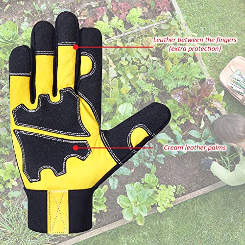 Leichte Gartenarbeit, Reinigung von Gartenarbeitsplätzen oder Reinigung eines Hühnerstalls. Die Handschuhe sind aus hochwertigen Stoffen und durchstoßfesten Lederpaneelen hergestellt, um Sie vor allen Arten von Dornen und rauen Ästen zu schützen.