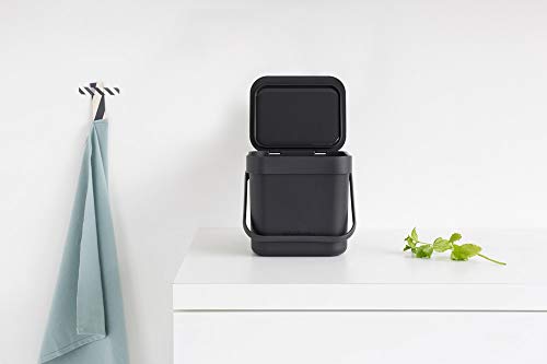 Brabantia Sort & Go Lebensmittelabfalleimer (3 l / grau), Kleiner Kompostbehälter für die Arbeitsplatte, mit Griff und abnehmbarem Deckel, leicht zu reinigen