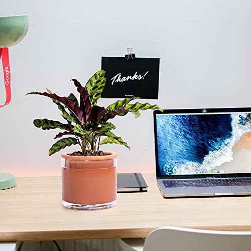 [Terracotta + Glas] Elegantes, modernes Design, selbstwässernder Pflanzentopf mit genialem, natürlichem, atmungsaktivem Terrakotta-Material und transparentem Glasbehälter.