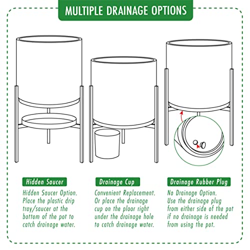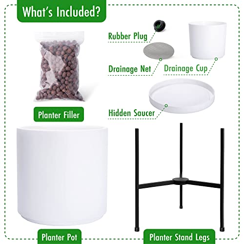 Lieferumfang: Pflanztopf mit Ablaufloch, Metall-Pflanzgefäßständer, Netznetz, Gummistopfen, Keramikkugeln, Pflanzgefäßfüller, Entwässerungsbecher.