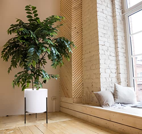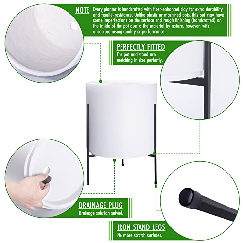 Handgearbeiteter (handverlegt) Pflanztopf aus Faser, moderner, runder weißer Topf, kombiniert mit einem maßgeschneiderten, strapazierfähigen Metall-Pflanztopfständer/-halter, zusammen kann er kleine bis große Pflanzen halten und Akzente in Haus und Garten setzen. Der Topf und der Pflanzkasten sind in der Größe perfekt abgestimmt. Topf und Ständer können auch separat verwendet werden.