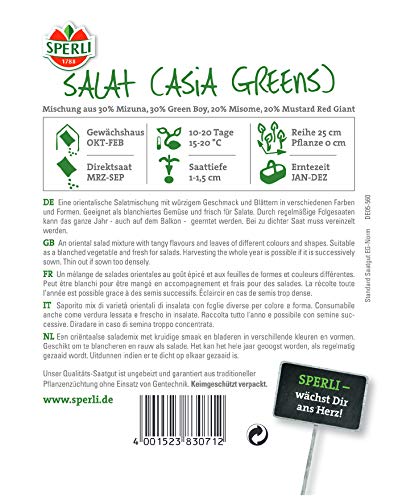 Sperli Premium Asia Salat | Asia Spicy Green Mix | 4 Sorten | Asia Salat Samen | winterhart ganzjährig