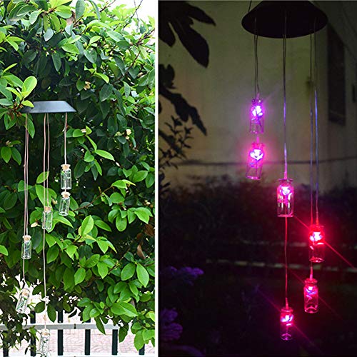 TICFOX Solar Power LED Colorful Windbell Lamp Wishing Bottle Wind Chimes Decor for Garden Garden Décor