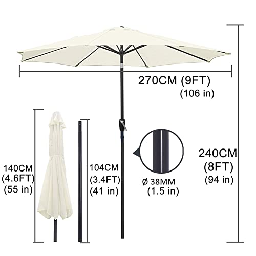 【Außenschirm】: Hergestellt aus 9 Fuß Outdoor-Qualität, 100 % Polyester, wasserdicht, Sonnenschutz, lichtbeständig, langlebig, leicht zu reinigen, UPF50+, geeignet als Schattenspender, kann im Freien und gewerblich verwendet werden (ohne Sockel)
