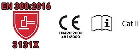 Die Schutzhandschuhe wurden getestet und zertifiziert, gegen die mechanischen Risiken von Abrieb, Schneiden, Reißen und Durchstechen gemäß der Norm EN388 2016: 3131X