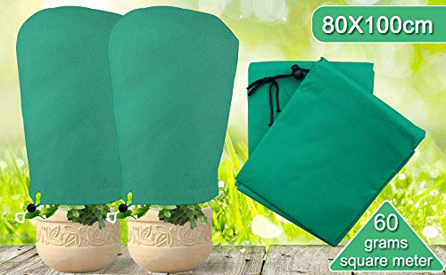 Akuoly Winterschutzvlies Winterschutz Wintervlies für Pflanzen Frostschutz Kübelpflanzensack Plant Cover, 2 Stück, 80x100cm, Blau