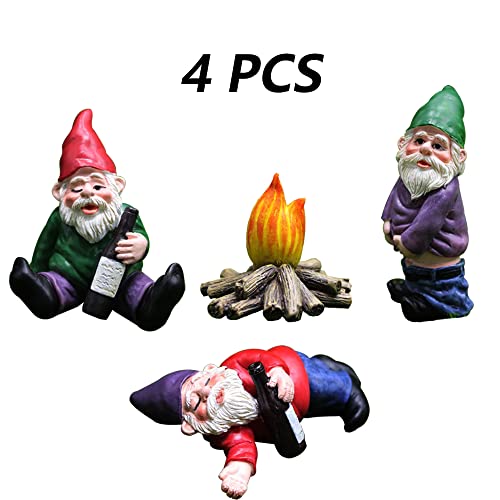 Gartenzwerge Set: Das Set enthält 4 mikroskopisch kleine Skulpturen, 1 Lagerfeuer-Skulptur und 3 Zwerge mit unterschiedlichen Gesichtsausdrücken.