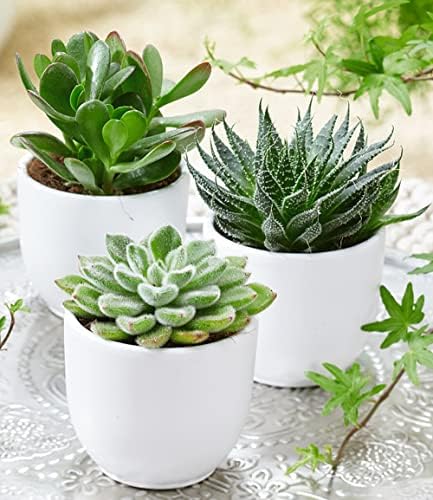 Der Sukkulenten 3er-Mix lässt sich zu effektvollen Arrangements kombinieren, denn die immergrünen Kunstwerke sind ein exotischer Blickfang in der Wohnung und im Sommer auf Balkon, Terrasse und im Garten. Fast schon skulpturenartige Wuchsformen und abwechslungsreiche Farbtöne sorgen für die aparte Optik des Sukkulenten 3er-Mix. Die kleinen, dekorativen Gewächse sind sehr pflegeleicht, da die Sukkulenten ein wasserspeicherndes Gewebe besitzen. Daher verzeihen sie es, wenn das Gießen einmal vergessen wird und eignen sich auch für Pflanzen-Neulinge. Mit ihrem eigenen Wasserspeicher können die Zimmerpflanzen auch längere Trockenperioden problemlos überstehen. Die Lieferung erfolgt ohne Übertopf!