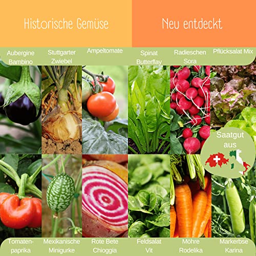 🍅 12 GESUNDE MINI GEMÜSESAMEN SORTEN – Das Gärtnern muss nicht unbedingt immer im Garten stattfinden. Mit unserem Bio Gemüsesamen Set bekommst du eine Vielzahl an alten und Balkon tauglichen Gemüse Sorten: Möhre Samen, Radieschen Samen, Baby Leaf Samen, Mexikanische Minigurken Samen, Mini Paprika Samen, Mini Tomaten Samen, Mini Auberginen Samen, Feldsalat Samen, rote Rüben Samen, Zwiebel Samen, Erbsen Samen und Spinat Samen