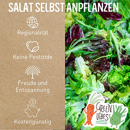 👩‍🌾 KINDERLEICHTE ANZUCHT DES GARTENSAMEN SET – dank der beiliegenden ausführlichen Anleitung mit Vorstellung jeder Sorte des Salat Mix. Inkl. Aussaatkalender!