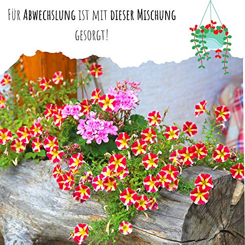 🌺BALKONBLUMEN – Sie haben die Wahl aus einem bunten Blumen-Mix, bestehend aus 18 Sorten oder einer klassischen, hängenden Petunien-Mischung. Auch in Kombination ein wunderschöner Anblick.