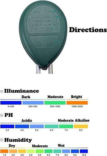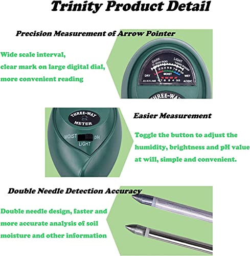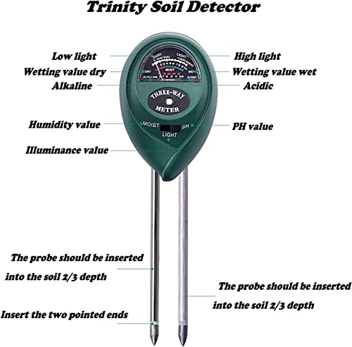 【3-in-1 Fun Ction】Das 3-in-1-Pflanzenfeuchtigkeitssensor-Messgerät kann Bodenfeuchtigkeit, Licht und pH-Wert testen (NUR zum Testen von Boden. Nicht zum Testen von reinem Wasser oder anderen Flüssigkeiten verwenden)