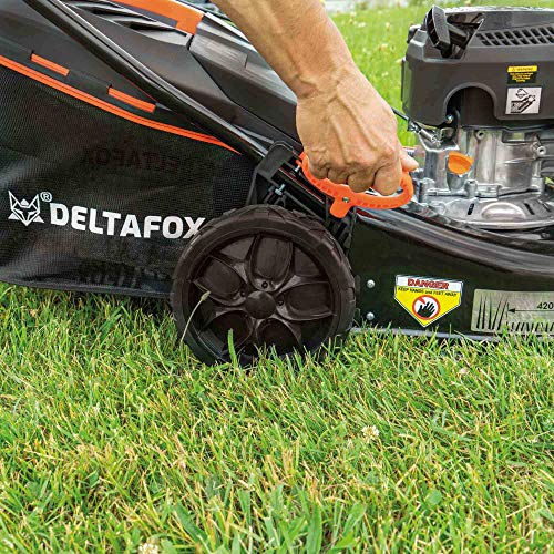 STARKER MOTOR: Der DELTAFOX Benzin Rasenmäher verfügt über einen 4-Takt Motor mit 1,9 kW (2,6 PS), einem Hubraum von 127 cm³ und ein robustes Stahlgehäuse mit 42 cm Schnittbreite. Damit wird das Rasenmähen zum Kinderspiel.