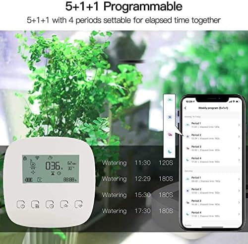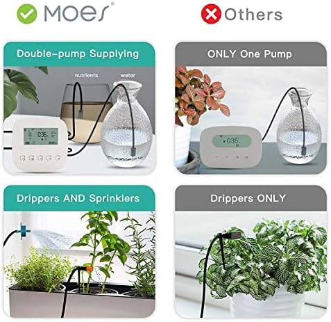 4. Wählen Sie die Pumpe frei für die unabhängige oder gleichzeitige Steuerung und schaffen Sie das echte Gefühl von Intelligenz für Ihre Pflanzen und Blumen, die mit verschiedenen Düsen für Tropfbewässerung und Sprühduschen unter einfachen DIY-Installationen mit umfassendem Zubehör im Kit kombiniert werden können.