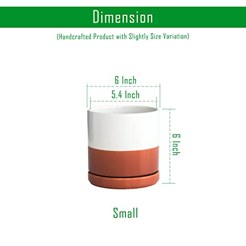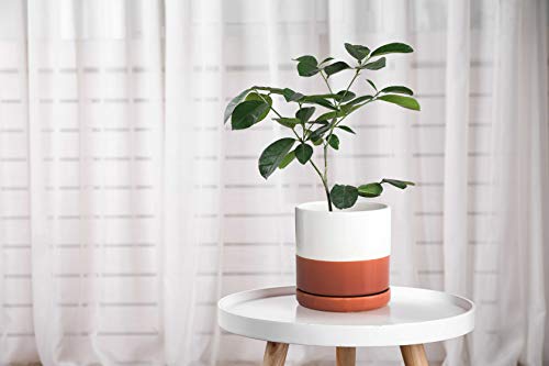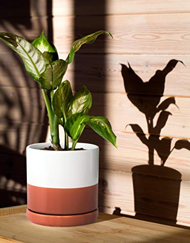 D\’vine Dev 15,2 cm Keramik-Übertopf mit Ablaufloch und Untersetzer, runder Blumentopf für den Innenbereich, Weiß/Keramikrot Terrakotta, 94-O-S-5