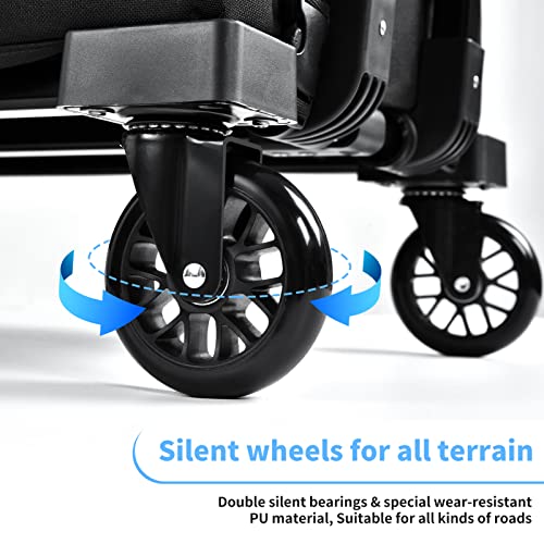 [Ausgewählte Räder] Der Abzieher ist mit leisen,doppelt gelagerten, verschleißfesten PU-Rädern und 360°Schwenkrad Vorderrädern für einfaches Manövrieren ausgestattet, sodass unser zusammenklappbarer Wagen Lasten über eine Vielzahl von Geländen transportieren kann,für alle Outdooraktivitäten im Gärtnern, Campen, Picknicken, Festival und wo immer Sie möchten.