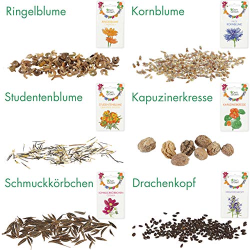 🌸 EIN MALERISCHES BLUMENMEER aus wunderschönen bunten Blüten wartet darauf, in Ihrem Zuhause zu erstrahlen! Schönes Samen Blumen Geschenk mit 6 Sorten samenfeste, essbare Blumensamen von Own Grown