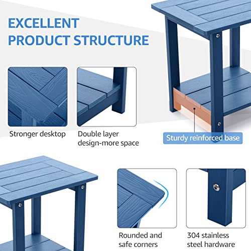 【Wetterfest】:Der doppelschichtige wetterfeste rechteckige Beistelltisch besteht aus HIPS (hochwertiges hochschlagfestes Polystyrol), das wie Holz mit einer natürlichen Holzmaserung aussieht, aber haltbarer ist als Holz, so dass Sie sich keine Sorgen über Risse im doppelschichtigen Beistelltisch, Verblassen oder Verfall machen müssen.