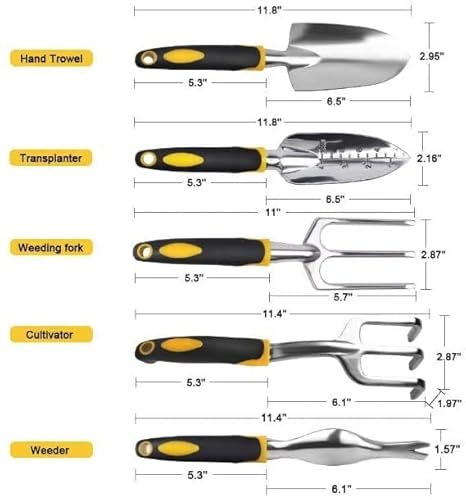 Garden Tools Set, 5 Piece Heavy Duty Aluminum Alloy Gardening Tools with Soft Handle, Garden Hand Tools Garden Gifts for Men Women
