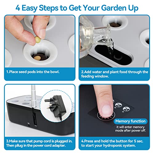 Hydrokultur-Anbausystem: Entworfen mit einem 4-Liter-Wassertank und einem geräuschlosen Wasserpumpen-Zirkulationssystem, das das Wasser immer frisch halten kann. Pflanzen in Hydroponik wachsen 20 % schneller als in Erde. Kein Durcheinander, keine Saisonbegrenzung.