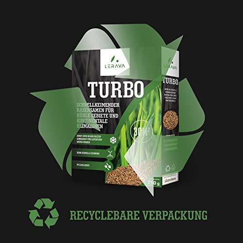 LERAVA TURBO Rasensamen schnellkeimend – für kühle Gebiete – Schattenrasen – leuchtend grüne Farben, resistenter Grassamen schnellkeimend – Nachsaat – 30m²