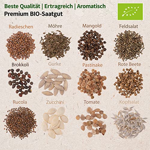 🥕 𝐁𝐈𝐎 𝐒𝐀𝐌𝐄𝐍 – In unserem vielfältigen Gemüsesamen Set befindet sich ausschließlich zertifiziertes Bio Saatgut. Alle Pflanzensamen sind für extra lange Haltbarkeit in speziellen Keimschutzbeuteln abgepackt.
