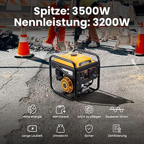 maXpeedingrods 3500W Leise Inverter Stromgenerator,Benzin Strom 4-Takt Motor Notstromaggregat für Hausversorgung Garage Werkstatt Baustelle,2x 230V 1x DC 12V Steckdose,LED-Anzeige