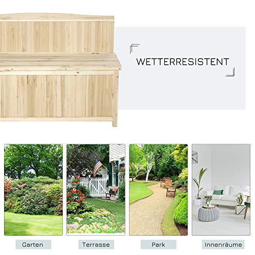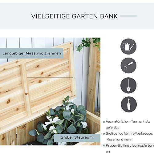 MULTIFUNKTIONALE AUFBEWAHRUNGSBOX: Dies ist nicht nur eine gemütliche Gartenbank, sondern auch eine praktische Aufbewahrungstruhe, um Dinge wie Gartengeräte, Grillzubehör, Sportgeräte, etc zu lagern. Sie können einige Blumen am Bogen auf dem Sitz eintopfen, um Ihren Garten zu dekorieren.
