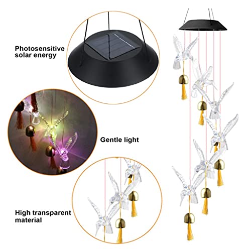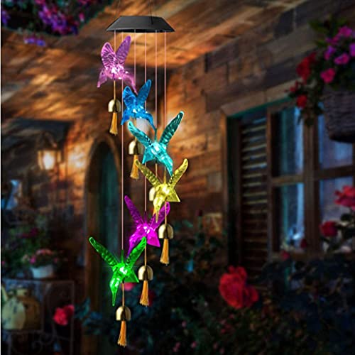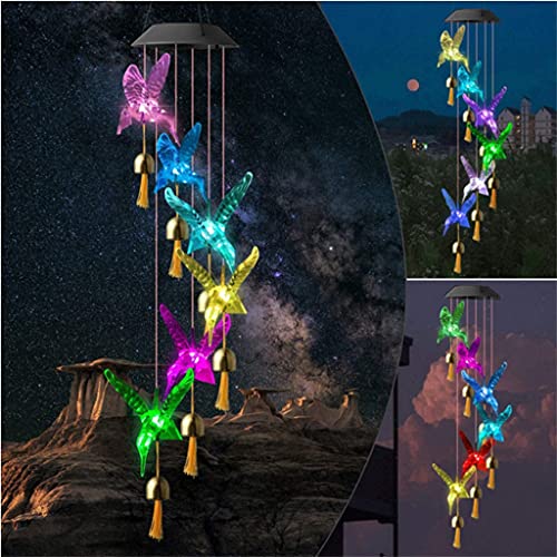 Solar Hummingbird Wind Chime Outdoor Indoor Color Changing Led Solar Power Wind Chime Light Colorful Decorative Mobile Hanging Wind Chime Personalized for Home Patio Garden Yad Porch Window