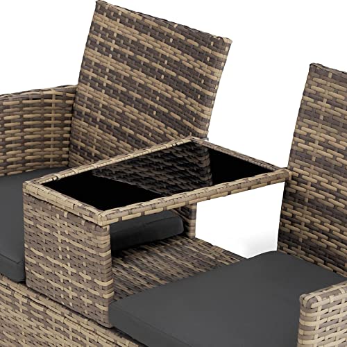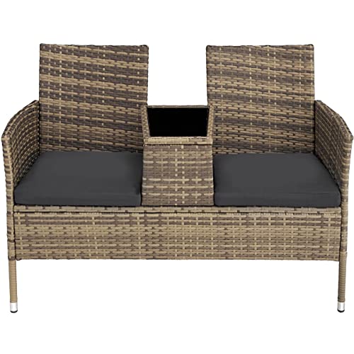 BITTE PLATZ NEHMEN: Genieße eine gemütliche Zeit zu zweit auf der einladenden Rattan-Sitzbank mit Tisch von tectake.