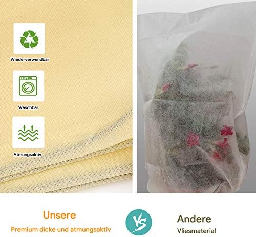 【Breite Anwendung】Vlies pflanzen frostschutz sind robust und groß genug, um leicht über die Pflanzen zu passen. Geeignet für Bäume, Sträucher, Topfpflanzen usw. Es ist pflanzenfreundlich, schadet dem Pflanzenwachstum nicht und sorgt für ein gesundes Wachstum der Pflanze in der Sonne und Feuchtigkeit, die durch sie hindurchgeht. Kann Saison für Saison wiederverwendet werden.