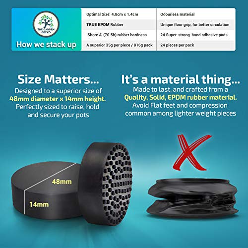 VERPACKT MIT WERT! – Wir fertigen nicht nur aus hochwertigem Vollgummi, packen mit superstarken Klebstoffen und integrieren eine intelligentere Oberflächenhaftung, sondern bieten auchx 24 Topffüße pro Packung – Fröhliche Gartenarbeit!