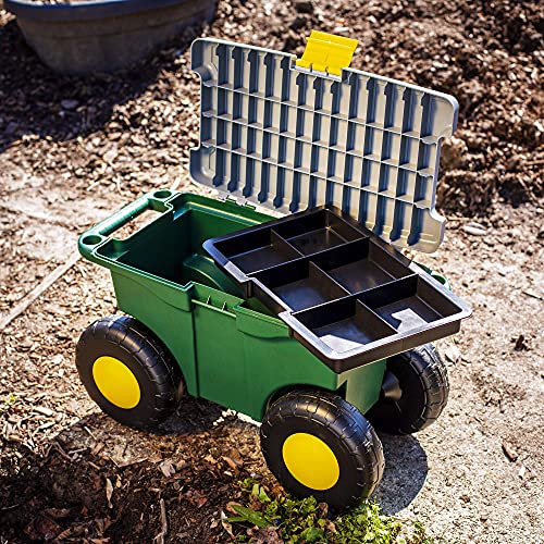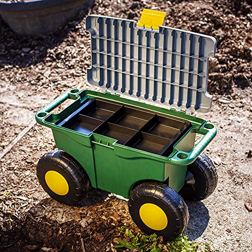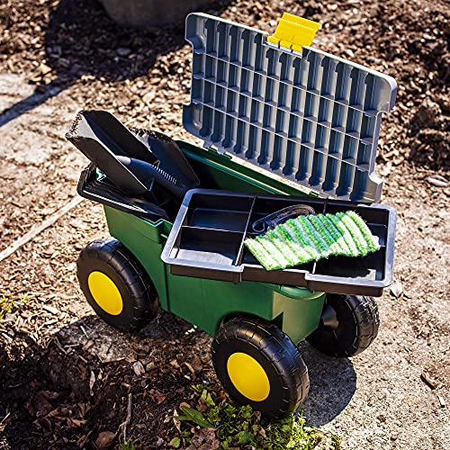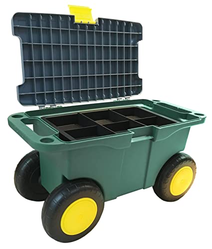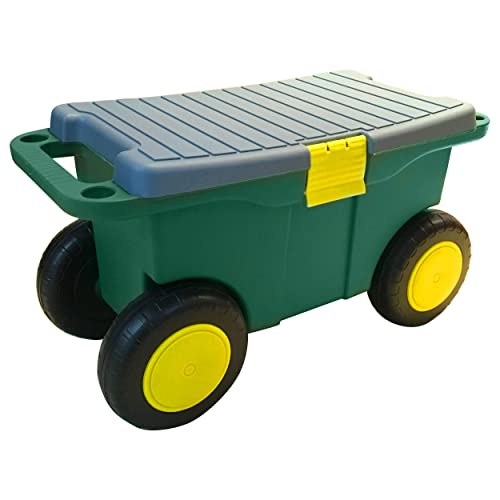 AUSSTATTUNG: Der Gartenwagen ist aus stabilem Kunststoff hergestellt | Die leichtgängigen Räder bieten ausreichend Stabilität | Riesiges Staufach mit ca. 14 L Volumen bietet genug Ablagemöglichkeiten | Bis 90 kg belastbar | Maße: 55 x 26 x 29 cm