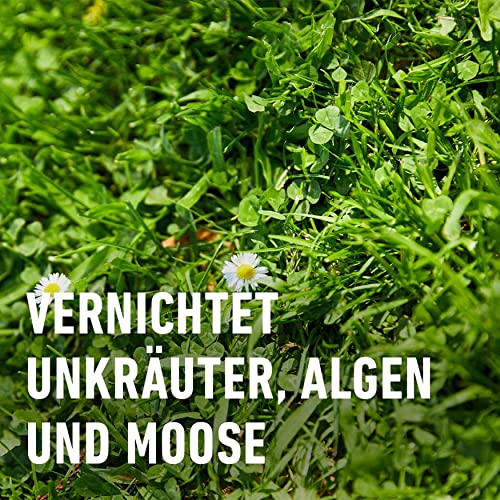 Hochwirksames, nicht bienengefährliches Mittel zur Bekämpfung von ein- und zweikeimblättrigen Unkräutern, Algen und Moosen zwischen Obst- und Gemüsekulturen sowie Zierpflanzen und -gehölzen im Garten sowie vor der Neuanlage, Ohne Glyphosat