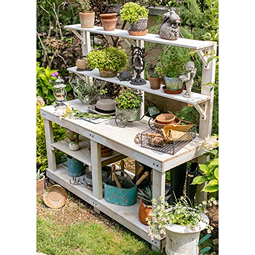 【Großer Stauraum】 Dieser Topfarbeitstisch hat ein sehr intimes Aufbewahrungsdesign. Über der Werkbank wurden zwei Schichten Lagerregale gebaut. Das Ganze kann für Gartengeräte und Topfpflanzen oder andere Gegenstände platziert werden.